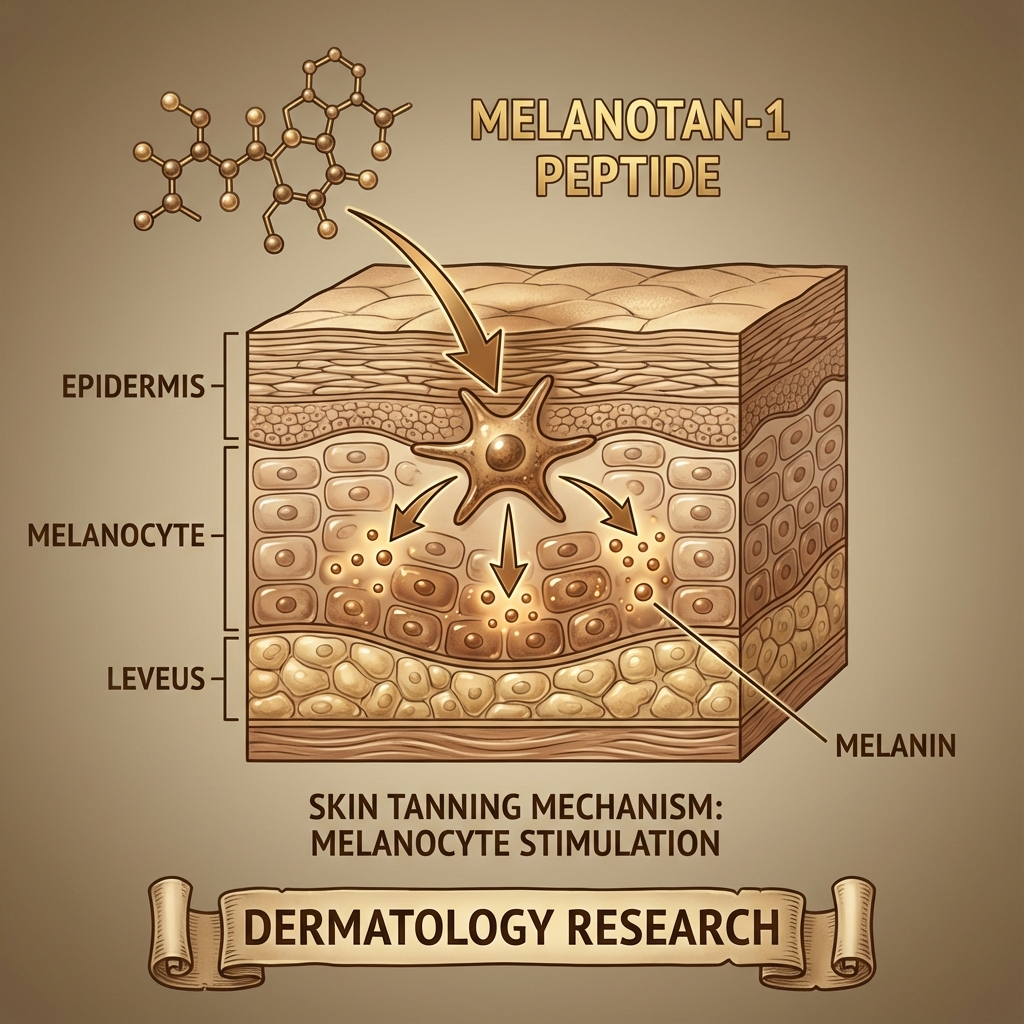 Melanotan 1 research on melanocortin-1 receptor activation, melanogenesis pathways, DNA repair, and photoprotection.